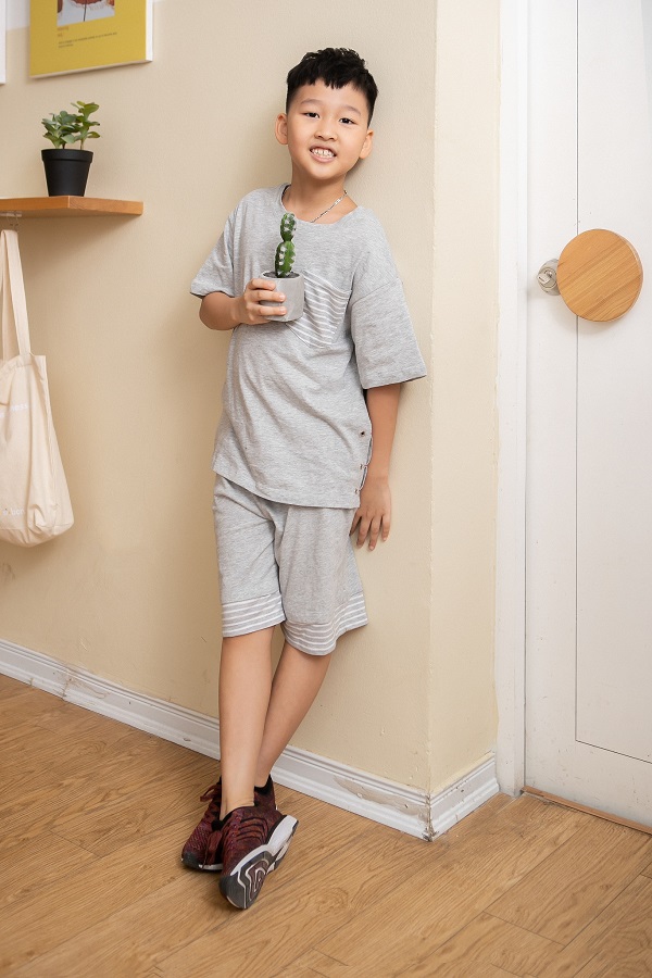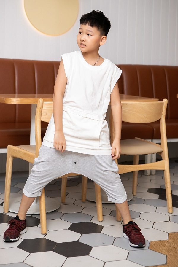 Bé trai Bảo Bin 8 tuổi, có năng khiếu nghệ thuật như mẹ, thông minh, nhưng cũng vô cùng tình cảm.