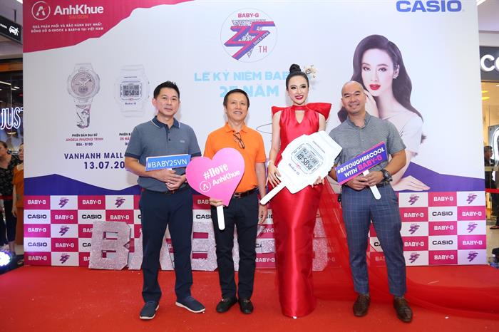 Tintuc - Ngày 13/07/2019, Công ty TNHH Anh Khuê Sài Gòn đồng hành cùng Casio tổ chức lễ kỷ niệm 25 năm ra mắt đồng hồ Casio Baby-G & Giới thiệu đồng hồ phiên bản đại sứ tại TTTM Vạn Hạnh Mall. Sự kiện có sự tham gia của đại sứ Baby-G Angela Phương Trinh cùng nhiều diễn viên, hot face nổi tiếng như Chúng Huyền Thanh, Ni Saki, Hồ Thị Thùy Linh, Jay Quân, Avin Lu…