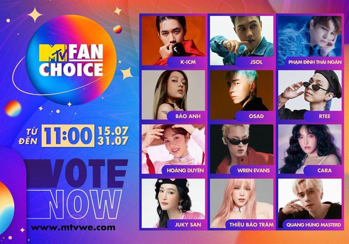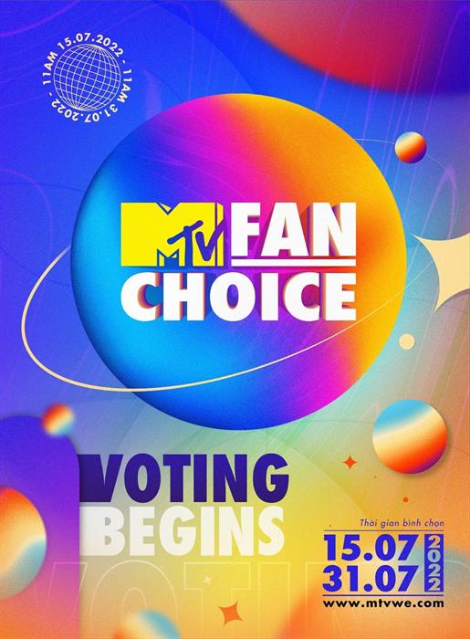 Tintuc - MTV FAN CHOICE 2022 chính thức khởi động từ ngày 15/07/2022, người hâm mộ có thể tham gia bình chọn cho nghệ sĩ và sản phẩm âm nhạc yêu thích tại website www.mtvwe.com.