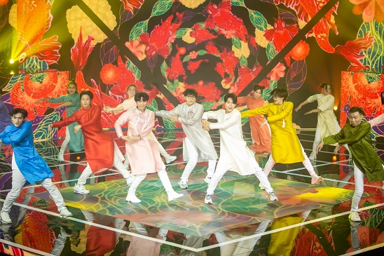 Nhóm Uni5 cũng mang đến tiết mục Tết đến rồi vui thôi đầy màu sắc với màn trình diễn vũ đạo sôi động trước khoảnh khắc đón Giao thừa