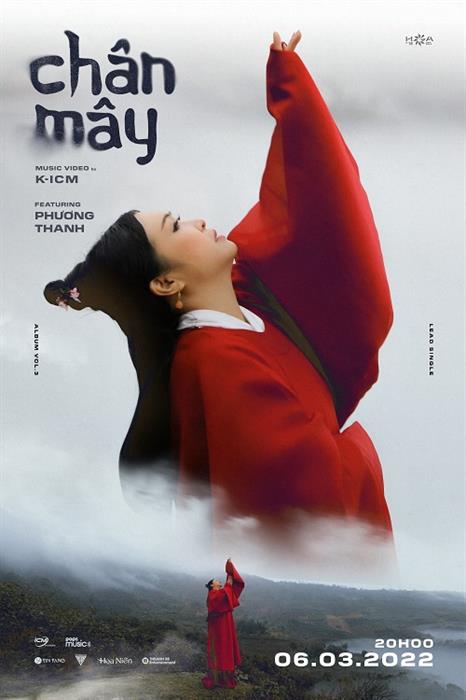 Tintuc - Tối 2/3/2022, K-ICM đã đăng tải poster giới thiệu sản phẩm trở lại mang tên Chân Mây. Đáng chú ý, với MV Chân Mây, K-ICM cũng đánh dấu lần đầu tiên kết hợp với nữ ca sĩ Phương Thanh. MV Chân Mây sẽ được ra mắt vào 20h00 ngày 6/3/2022 trên kênh YouTube K-ICM Official và các nền tảng nhạc số.