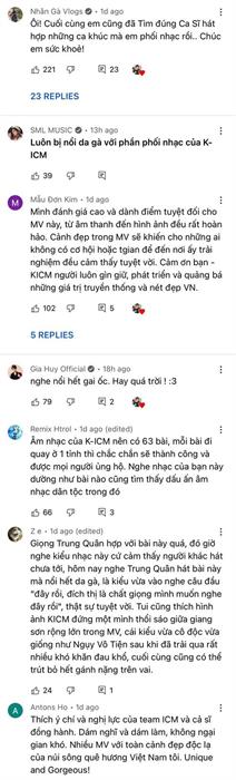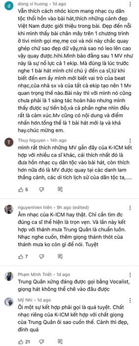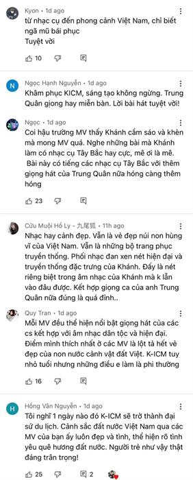 Đặc biệt, netizen thậm chí còn đề nghị K-ICM ra mắt luôn 63 MV để quay luôn ở 63 tỉnh thành khắp Việt Nam vì ở mỗi sản phẩm, nam producer và ekip đều đưa khán giả đến một miền đất tuyệt đẹp của đất nước. Nhiều người hâm mộ còn đùa rằng K-ICM xứng đáng được đề cử danh hiệu “Đại sứ du lịch” cũng chính vì loạt MV “dọc miền đất nước” của anh chàng. Có thể thấy, thông qua những sản phẩm nghệ thuật chất lượng, K-ICM đã góp phần tích cực vào công cuộc quảng bá văn hóa truyền thống một cách gần gũi, trực quan và chạm đến đông đảo giới trẻ.