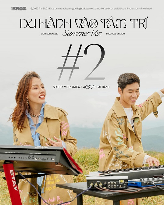 Đáng chú ý, ở riêng nền tảng Spotify, ca khúc Du Hành Vào Tâm Trí (Summer Version) của Gigi Hương Giang kết hợp với K-ICM cũng chễm chệ vươn lên vị trí Á quân, mang về cho nam producer trẻ tuổi “cú đúp” với 2 ca khúc lần lượt nắm giữ 2 vị trí cao nhất của BXH này. Đây là thành tích cực kì đáng gờm mà không nhiều nghệ sĩ ở Vpop đạt được, chứng tỏ tài năng và nỗ lực của K-ICM đã nhận được những kết quả tương xứng.