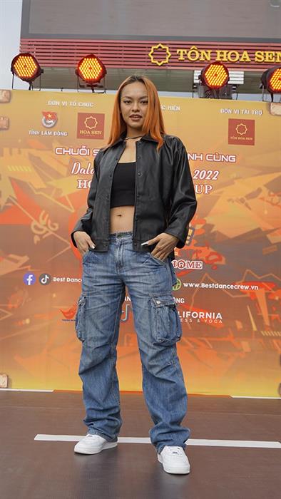 Đặc biệt, Mai Ngô chọn phong cách trang phục bụi bặm và cá tính để phù hợp với tính chất sự kiện nhưng cũng giúp cô truyền tải được bản sắc của ca khúc “CML”. Lối trang điểm đậm càng làm rapper 9X thêm nổi bật và chiếm spotlight trên sân khấu.