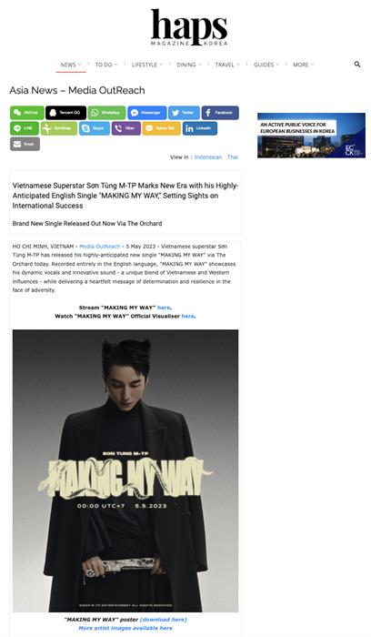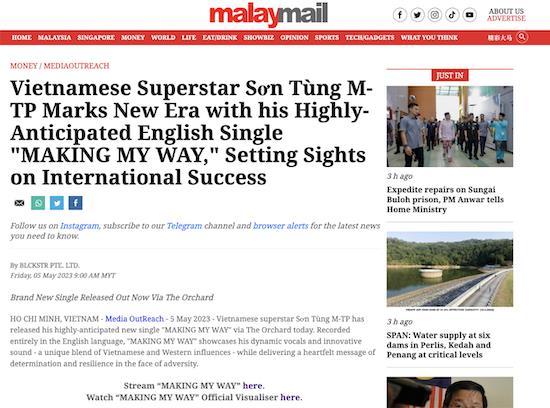 Ngoài những con số ấn tượng trên, Making My Way cũng chiếm trọn sự chú ý của truyền thông không chỉ trong nước và quốc tế. Nhiều tờ báo, trang tin của các nước Đông Nam Á (Singapore, Thái Lan, Philippines, Indonesia) lẫn Hàn Quốc, Australia,… đều đồng loạt đưa tin về sản phẩm trở lại của nam nghệ sĩ đình đám hàng đầu Việt Nam.
