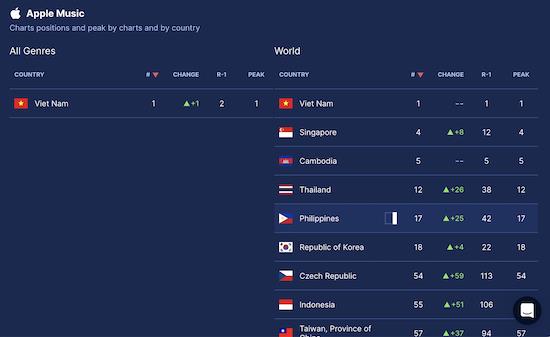 Nguồn: Soundcharts. Cập nhật vào 10:25 ngày 6/5