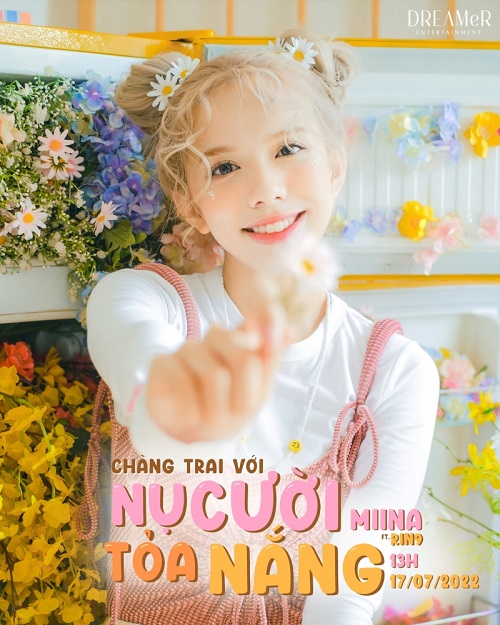 Tấm poster của MiiNa mang đến một tạo hình vô cùng đáng yêu của nữ ca sĩ với tóc cột hai chùm, điểm xuyến bằng những đóa hoa cúc trắng. Vây quanh MiiNa là một căn phòng với đầy các loại hoa sặc sỡ, hứa hẹn mang đến cho khán giả những khung hình tuyệt đẹp khi MV chính thức ra mắt. Là em út của nhóm, MiiNa chia sẻ trước thềm ra mắt sản phẩm khá đặc biệt này: “Mình thực sự rất hồi hộp khi ra mắt sản phẩm Chàng Trai Với Nụ Cười Tỏa Nắng, cảm giác rất khác so với ra mắt các sản phẩm khi có đầy đủ các thành viên của nhóm. Mình lựa chọn một giai điệu vừa quen vừa lạ của anh RIN9 để thể hiện, mong muốn lan tỏa sự ấm áp của ánh nắng ngày hè đến cho mọi người. Mong mọi người mở lòng và đón nhận cũng như có thể tìm được một phần nào đó của mình trong ca khúc vô cùng đáng yêu này”.