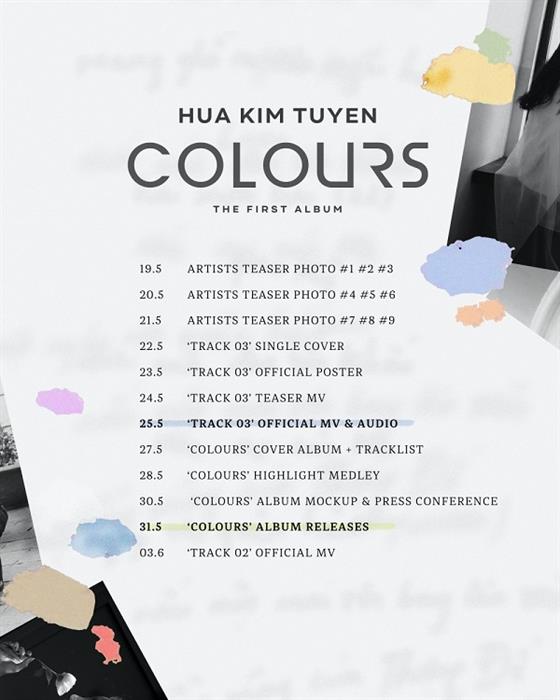 Tintuc - Ngày 21/5, Hứa Kim Tuyền đã chính thức công bố lịch phát hành album đầu tay mang tên Colours, kết hợp cùng dàn nghệ sĩ Việt uy tín.