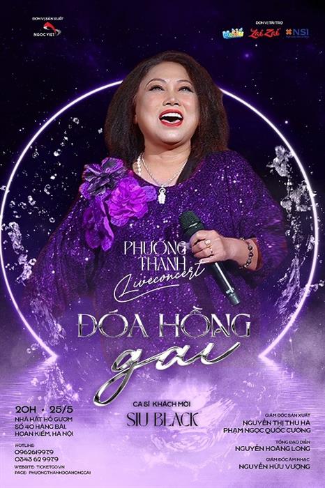 Live concert Đóa hồng gai của Phương Thanh sẽ được diễn ra tối 25/5 tại Nhà hát Hồ Gươm (Hà Nội), với sự góp mặt của Bằng Kiều, Siu Black, Đan Trường, Hà Lê, Lân Nhã, MONO. Trong năm 2024, nữ ca sĩ cũng sẽ tổ chức 2 live concert tiếp theo tại Hạ Long (Quảng Ninh) và TP.HCM.