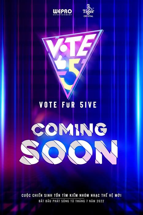 Tintuc - Ngày 20/7, Wepro Entertainment đã chính thức công bố thông tin sẽ sản xuất chương trình truyền hình thực tế Vote For Five. Đây là một cuộc thi âm nhạc nhằm tìm kiếm 5 nam ca sĩ trẻ tài năng, trong độ tuổi từ 18 – 28 trên khắp Việt Nam, để thành lập một nhóm nhạc thần tượng nam (boygroup).