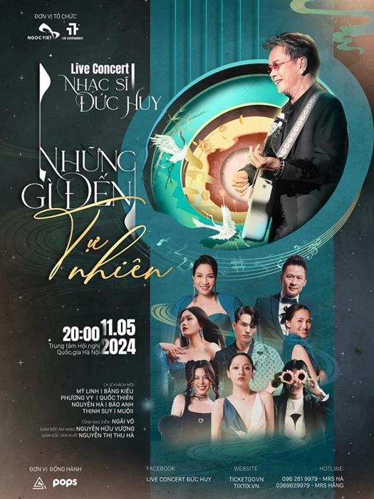 Live concert Những gì đến tự nhiên của nhạc sĩ Đức Huy sẽ diễn ra lúc 20h ngày 11-5 tại Trung tâm Hội nghị quốc gia Hà Nội (57 Phạm Hùng, Mễ Trì, Nam Từ Liêm, Hà Nội).