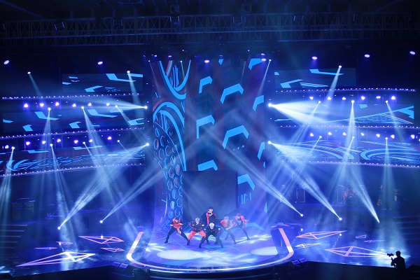 Sân khấu được dàn dựng hoành tráng với ánh sáng và công nghệ hiện đại không thua kém concert của họ tại Seoul