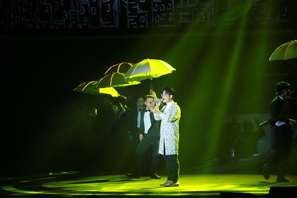 Đàm Vĩnh Hưng có phần trình diễn đầy sắc màu với ca khúc Hello và tiếp sau đó là một chút sâu lắng trong ca khúc chưa từng được phát hành trước đó – Đàn ông khóc bằng tim