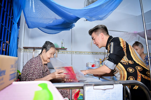 Không chỉ hát tặng các vị khán giả đặc biệt này, Mr Đàm còn cùng các nghệ sĩ đến từng giường trao tặng quà cho các cụ không tiện đi lại. Đây cũng là điểm nhấn của “Đại chiến ẩm thực” năm nay khi có sự đồng hành, ủng hộ của các nghệ sĩ lẫn các mạnh thường quân, khiến chương trình không chỉ giải trí đơn thuần mà còn lan toả tinh thần nhân ái khi hỗ trợ, đóng góp vào bữa ăn cho các mái ấm.