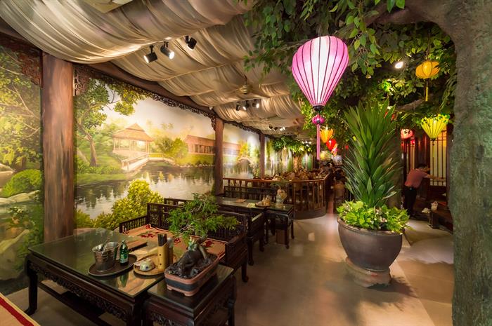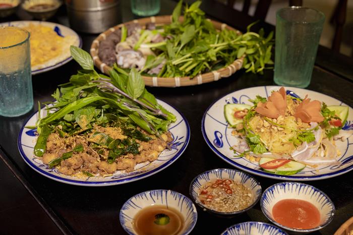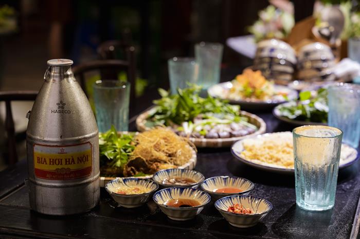 Không gian quán ngày khai trương như 1 ngày trẩy hội với các hoạt động ca - múa - hát truyền thống. Những hình ảnh chiếc nón quai thao, tà áo tứ thân,... được tái hiện.