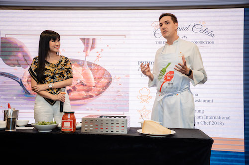 Tại sự kiện, những người yêu mến ẩm thực của đất nước hình chiếc ủng xinh đẹp đã có cơ hội trải nghiệm ẩm thực chuẩn Ý thông qua phần “cooking show” ngay trên sân khấu. Đặc biệt là màn tương tác vô cùng thú vị giữa 5 vị đầu bếp Ý nổi tiếng và 4 vị khách mời đặc biệt.