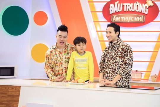 Tintuc - Tại Đấu Trường Ẩm Thực Nhí, nam diễn viên Hải Triều khoe giọng hát độc, lạ và trổ tài làm bánh flan với sự hướng dẫn của hotboy 8 tuổi Hữu Khang.