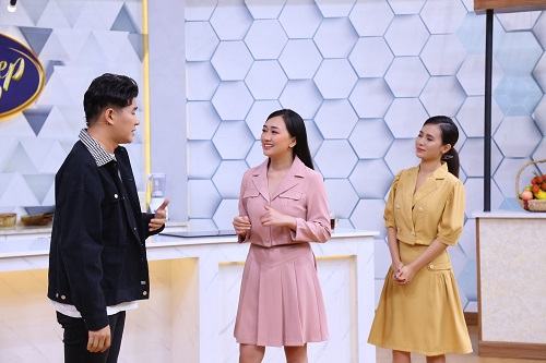 Sau màn chào hỏi vui nhộn, MC Vũ Mạnh Cường tiết lộ dù không tự tin về khả năng nấu nướng nhưng đã chuẩn bị kĩ lưỡng một món ăn đặc biệt hòng lấy lòng hai chị em Phương Lan và Ngọc Xuyên. Món ăn mà anh đem đến chính là tôm rim nước dừa.
