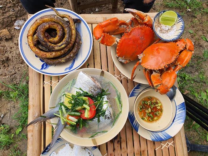 Sau một hồi vật lộn đến ướt sũng, Trường Giang và Cris Phan đã thu được chiến lợi phẩm “xịn xò” là hai con cua và ba con cá “mập siêu cấp”. Quá vui mừng, cả hai liền mang ngay vào bếp để chế biến món ngon. Đây cũng lần đầu tiên, Cris Phan được chủ tiệm cơm Mười khó truyền bí kíp nướng “đặc sản” Lịch vòng với muối ớt. Với người dân Quảng Nam, lịch vòng là thứ sản vật thuộc kiểu 'trời cho', tùy thuộc vào các thời điểm, nhưng nhiều nhất là trong mưa bão. Lịch vòng thường không to, chỉ cỡ cây đũa ăn cơm hoặc lớn hơn một chút, dài chừng 20 - 30 cm. Lịch vòng nướng thơm trên than hồng và được ăn kèm với rau rau đồng gồm lá lốt, bắp chuối chát, ngổ điếc, rau răm, hành hoa, thân cây môn, nghệ tươi, ớt, sả… Bên cạnh đó, Trường Giang cũng “bật mí” thêm mẹo mẹo nấu cá với thơm hay cua hấp nước dừa sao giữ được độ ngọt tự nhiên của món ăn mà vẫn đậm vị xứ Quảng.