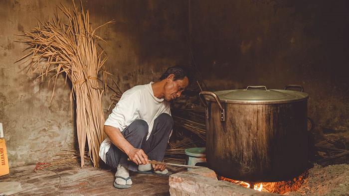 Những ngày cuối năm, ông Thọ bên bếp than hồng nấu nồi bánh làm nên nét đẹp đặc trưng của ẩm thực Việt Nam ngày Tết.
