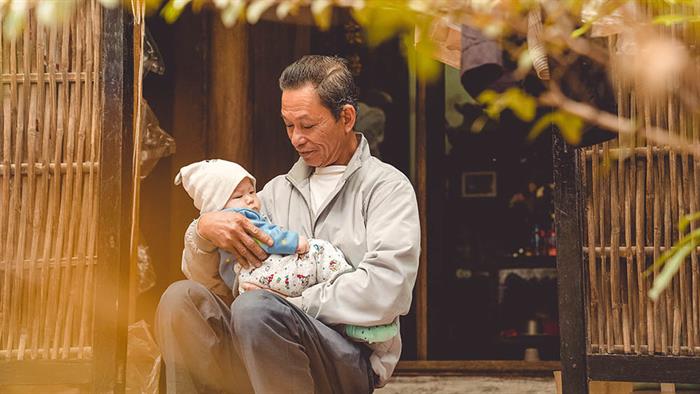 Hình ảnh ông Thọ chăm cháu cho các con đi làm xa cũng là hình ảnh quen thuộc quen thuộc của bao người.