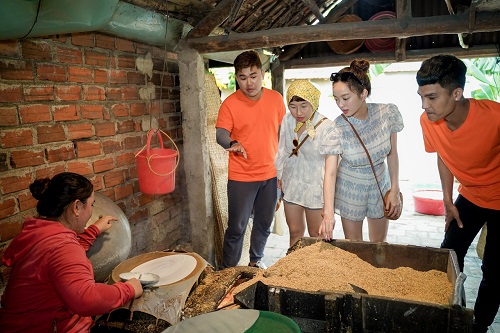 Sau khi đã tạm “lót dạ”, họ rủ nhau tới làng làm bánh tráng để tìm hiểu về món đặc sản này. Tại đây, Trang Hý hăm hở thử trổ tài tráng bánh, tưởng như những công đoạn vô cùng đơn giản: đổ bột, trải bánh ra nhưng cô nàng “toang” hết lần này tới lần khác. Nhìn thành quả là một “viên bánh tráng”, cả Mạc Văn Khoa và Quốc Khánh đều cười ngặt nghẽo không ngưng. Biết mình bị “chọc quê” nên Trang Hý nhanh trí rủ Quốc Khánh đi tìm người hướng dẫn nấu ăn.