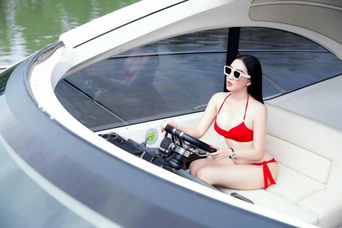 Huỳnh Thúy Anh có chiều cao 1,71 m và số đo ba vòng 90-60-95 cm. Bên cạnh đó, cô còn lưu giữ thanh xuân bằng những bộ hình bikini chụp tại du thuyền sang trọng. Trong ảnh, Huỳnh Thúy Anh diện bikini màu đỏ nóng bỏng, tự tin thả dáng trước ống kính.