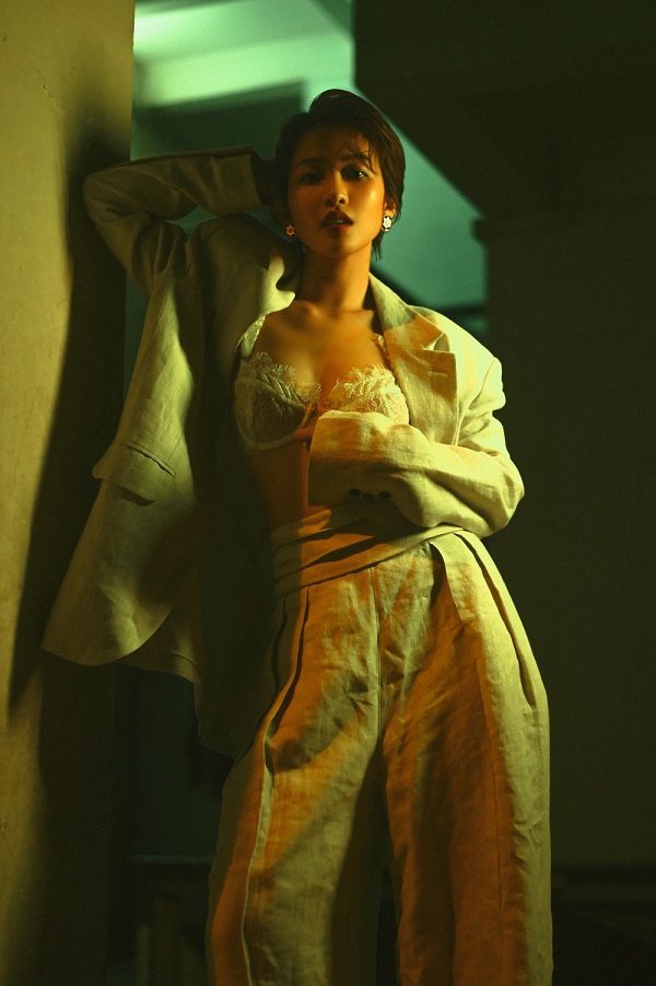Để đánh dấu hình tượng mới này, Khả Ngân cũng ngay lập tức thực hiện một bộ ảnh mới, vừa khoe mái tóc ngắn cá tính, vừa khoe trọn body nóng bỏng không hề kém cạnh bất kỳ mỹ nhân Vbiz nào. Nếu như các mỹ nhân Vbiz luôn nỗ lực tập luyện, kể cả can thiệp “dao kéo” để có body gợi cảm thì Khả Ngân lại luôn thoải mái với số đo ba vòng chưa đạt chuẩn của mình. Dù không có vòng 1 khủng nhưng sự tự tin và thần thái của cô vẫn không thể phủ nhận. Đặc biệt sau thời gian nghỉ dịch, giọng ca “Cô gái Việt Nam” vẫn giữ được vòng eo săn chắc đâu ra đấy.