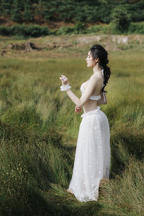Mới đây, trong bộ ảnh mới nhất được chụp tại thôn Đắk Tân - xã Đắk Nia - tỉnh Đắk Nông. Tường Vi lại một lần nữa khiến khán giả ngẩn ngơ với vẻ đẹp trong sáng của mình. Không cần quá cầu kỳ, Tường Vi chỉ diện một bộ váy trắng, khoe vòng eo thon, tấm lưng trắng nõn tựa như tiên giáng trần. Đặc biệt, nhan sắc ngọt ngào của nàng hậu là vũ khí đốn tim người nhìn.