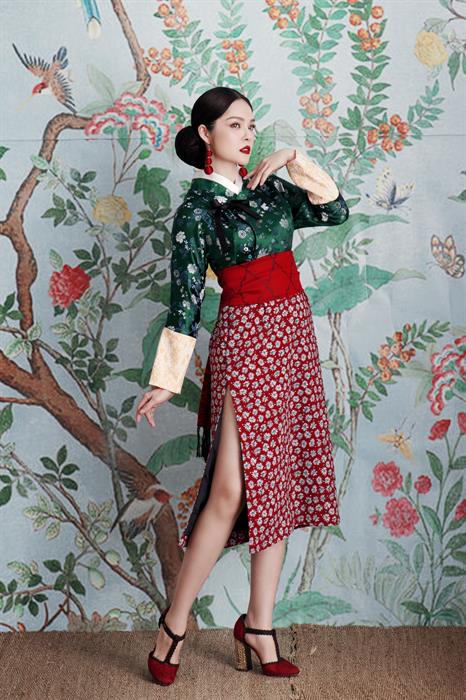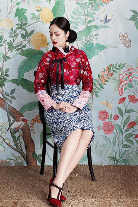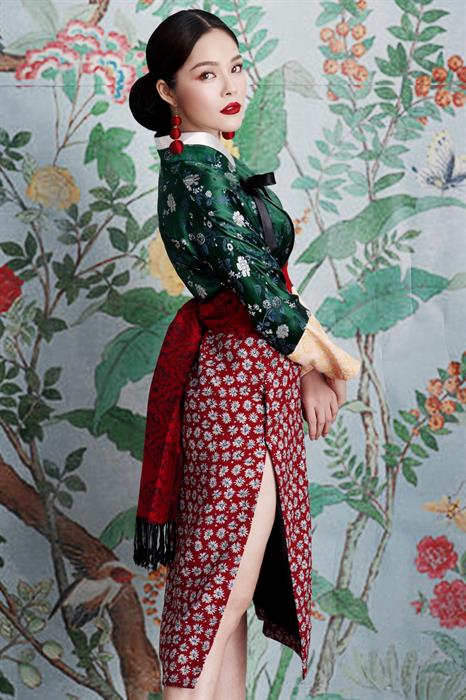 Ở phong cách cách tân, Dương Cẩm Lynh vận phục trang với phần thân áo được thiết kế nhiều nét tương đồng với Hanbok – Quốc phục của Hàn Quốc. Thế nhưng, từ eo trở xuống, bộ trang phục lại mang hơi hướm của Sườn Xám – một nét đặc trưng của văn hóa Trung Quốc, với phần chân váy xẻ tà cao. Trong một thiết kế cách tân khác, người đẹp sinh năm 1982 diện áo dài vạt ngắn, kết hợp cùng quần lụa đen khoe vóc dáng ‘mình hạc xương mai’. Không thể thiếu một thiết kế truyền thống trong bộ ảnh, nữ diễn viên ‘Ải mỹ nhân’ thả dáng trong bộ áo dài chất liệu nhung được thêu nổi họa tiết hoa đào trên tà áo. Ở bất cứ phong cách nào, Dương Cẩm Lynh đều thể hiện trọn vẹn vẻ nền nã, dịu dàng nhưng không kém phần rực rỡ, sang trọng.