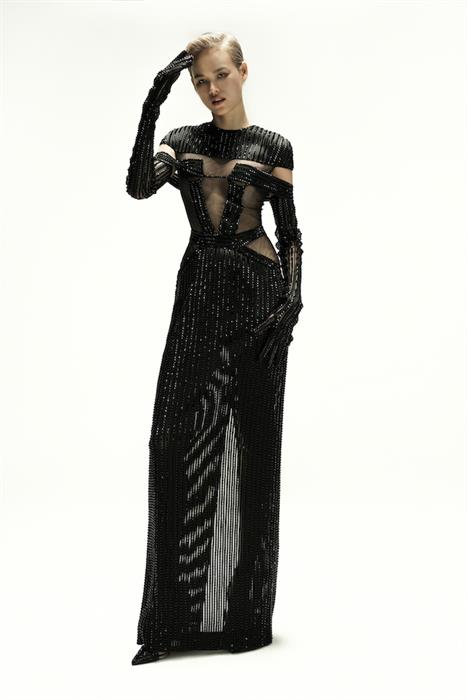 Ví dụ điển hình là một chiếc áo thun đen ôm sát cơ thể, chiếc mũ trùm che khuất nửa sau đầu của người mẫu. Chiếc áo có điểm nhấn là phần nơ đính trước ngực, phối cùng chân váy taffeta cao cấp có hàng nút đính lộ tại mặt trước. Các thành tố đối nghịch được kết hợp nhằm nhấn mạnh tính vạn biến trong thời trang.