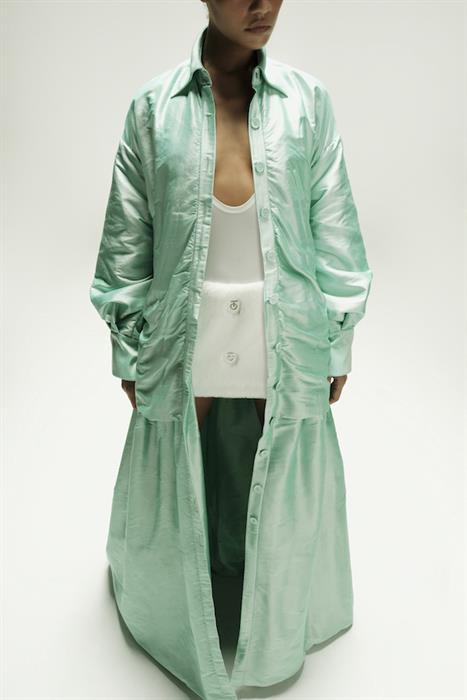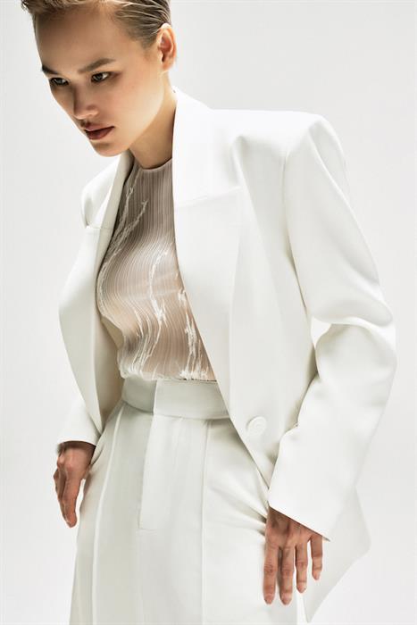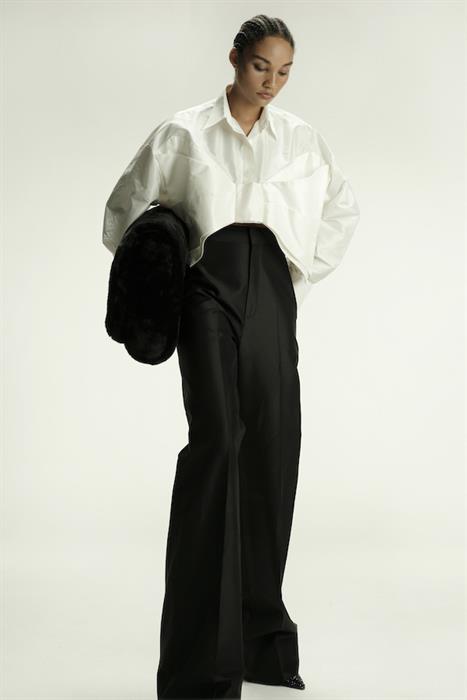 Không khó để thấy 33 thiết kế thể hiện cuộc chơi avant-garde trong cách thức nhà thiết kế Công Trí xây dựng phom dáng và kết hợp trang phục. Khái niệm avant-garde ra đời tại Pháp vào thế kỉ XIX với ý chỉ các thể nghiệm mang tính cách tân và đột phá trong nghệ thuật.. CONG TRI Thu Đông 2023 khai thác việc thể nghiệm (avant-garde) trong nền tảng tối giản (minimalism) nhằm đứa đến một đối thoại thú vị trong thời trang đương đại: khi sự tinh quái tính được diễn giải theo cách thức tinh giản nhất.