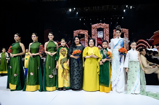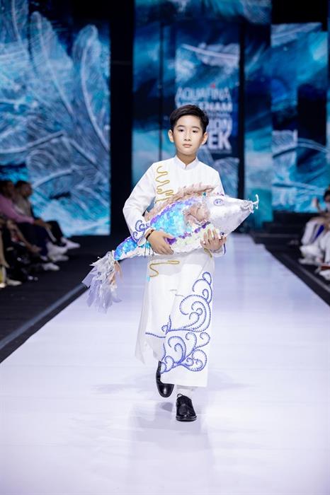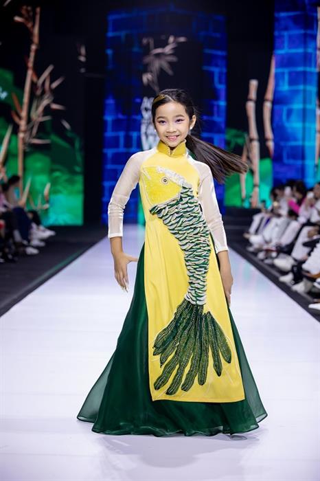 Trong phần trình diễn BST “Cá Chép Hóa Rồng” của NTK Phương Hồ, Hoa hậu Khánh Vân đã xuất hiện vô cùng ấn tượng ở vị trí Vedette cùng dàn người mẫu nhí đáng yêu tài năng. Đặc biệt trong đó, Miss Eco Teen International Bella Vũ và anh trai Oscar Vũ mở màn cho hai phần của BST bằng thần thái tự tin và cuốn hút.