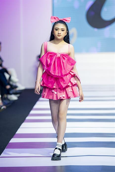 NTK Trương Hoàng Kỳ Anh là cái tên mở màn cho show diễn với bộ sưu tập BéBé Ribbon với hình ảnh những chiếc nơ xuất hiện xuyên suốt bộ sưu tập. Toàn bộ các mẫu thiết kế với tông hồng neon được nhà thiết kế biến tấu đa dạng và ấn tượng. Hai chân dài tuổi teen là Thảo Vy Lucy và Nancy Linh Ngọc được gửi gắm trình diễn 2 thiết kế hoành tráng của bộ sưu tập.