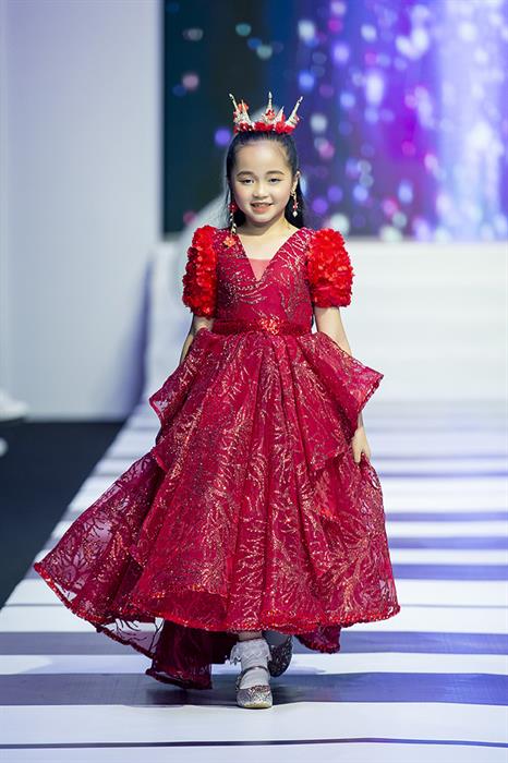 Cô bé Hoàng Yến lộng lẫy trong bộ váy công chúa màu đỏ của NTK Pi Trần