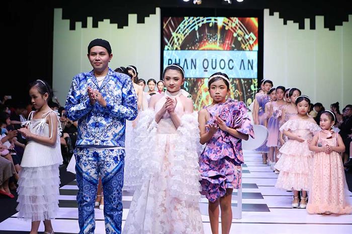 Bộ sưu tập The Everlasting Symphony No8 của NTK Phan Quốc An khép lại show diễn với 25 mẫu thiết kế đẹp mắt dựa theo chủ đề Fashion Melody của Đêm Hội Mẫu Nhí năm nay. NTK Phan Quốc An mang hình ảnh của những nàng thơ âm nhạc cổ điển vào trong các thiết kế của mình.