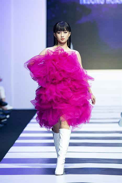 Siêu mẫu My Lê với thương hiệu thời trang Zoey Boutique do chính cô sáng lập mang đến hình ảnh những chú chim hồng hạc dễ thương trên sàn diễn. Bộ sưu tập mang tên Flamingo với những bộ đầm công chúa sang trọng đã đem đến màn trình diễn vô cùng đáng yêu của các bé mẫu nhí.