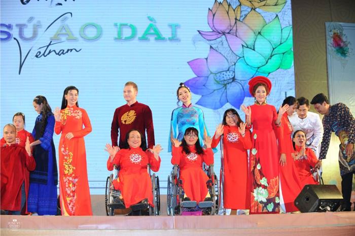 Không chỉ là một đêm trình diễn Thời trang, đêm Gala Đại sứ áo dài Việt Nam còn trở nên vô cùng ấm cúng và xúc động với hình ảnh màn trình diễn áo dài của các người mẫu và nghệ sỹ nổi tiếng Việt với những người khuyết tật. Đưa ý tưởng để người khuyết tật diện áo dài lên sân chơi này, NTK Việt Hùng cho biết: “Tôi và những người đã đồng hành cùng tôi trong chương trình này đã may mắn hơn các bạn, nên chúng tôi mong mình có thể san sẻ chút nào đó những may mắn ấy, để truyền đến cộng đồng người khuyết tật một niềm tin vào cuộc sống. Đây cũng là dịp để động viên, khuyến khích người khuyết tật tự tin thể hiện tài năng, năng khiếu trong sáng tác và biểu diễn nghệ thuật của mình, làm phong phú thêm đời sống văn hóa, tinh thần cho họ, góp phần làm thay đổi nhận thức xã hội, xóa bỏ rào cản, tạo điều kiện để người khuyết tật vươn lên hòa nhập cộng đồng”.