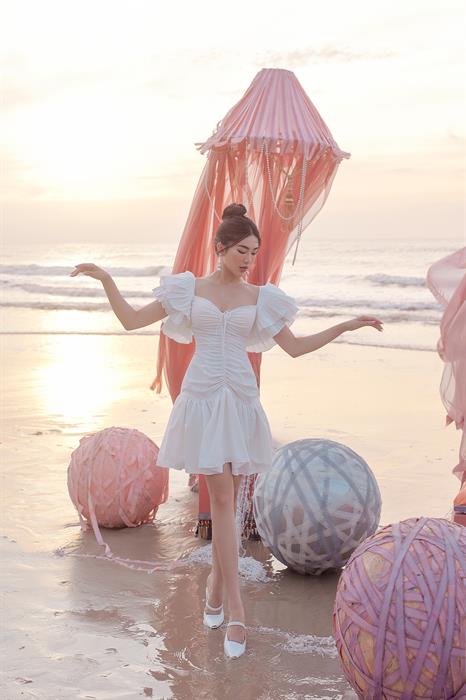 Nàng thơ Linh Trương mơ màng xinh đẹp trong thiết kế Ruffled Sleeves Dress mềm mại bay bổng với phần tay áo được cách điệu hóa xuất thần trong BST.