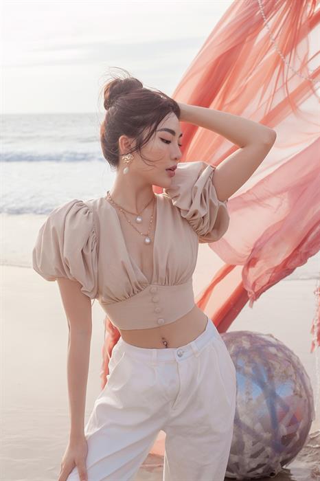 Hiểu được đắn đo của phụ nữ Việt Nam khi không tự tin khoe phần bắp tay, VAS đã thiết kế những dáng áo tay phồng và xếp li dấu khuyết điểm.