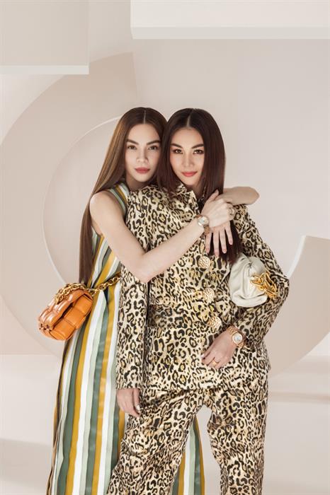 Thanh Hằng và Hà Hồ phối trang phục ton-sur-ton với phụ kiện Bottega Veneta và đồng hồ Chopard