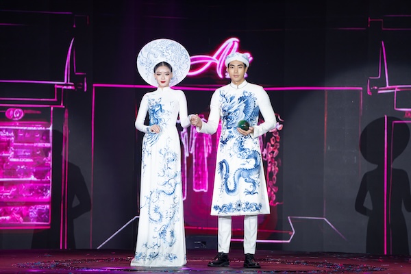 Nhà thiết kế sử dụng các chi tiết như biểu tượng rồng và phượng, phụ kiện, những gam màu đặc trưng của tầng lớp quý tộc nhằm tạo nên sự độc đáo và ấn tượng cho bộ trang phục. Cả hai đã có sự kết hợp ăn ý trong màn catwalk đôi và hoàn thành tốt vai trò mở màn cho bộ sưu tập này. Cặp đôi diễn viên tuy không chuyên ở lĩnh vực người mẫu nhưng luôn để lại ấn tượng đẹp trong lòng khán giả sau những màn trình diễn catwalk.