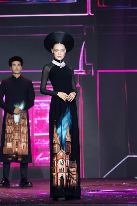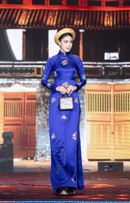 Từ cánh trái sân khấu, Minh Tú xuất hiện trên chiếc xe kéo được điều khiển bởi phu xe do diễn viên Quốc Cường hoá thân và cô trình diễn bộ áo dài được lấy cảm hứng từ trang phục của những người phụ nữ trong cung đình đại nội Huế. Sự xuất hiện đặc biệt của cả hai, khiến khách mời bất ngờ và thích thú với sự đầu tư của nhà thiết kế. Minh Tú thể hiện thần thái của sự quyền lực, nghiêm trang của người phụ nữ thời phong kiến thông qua bộ trang phục.