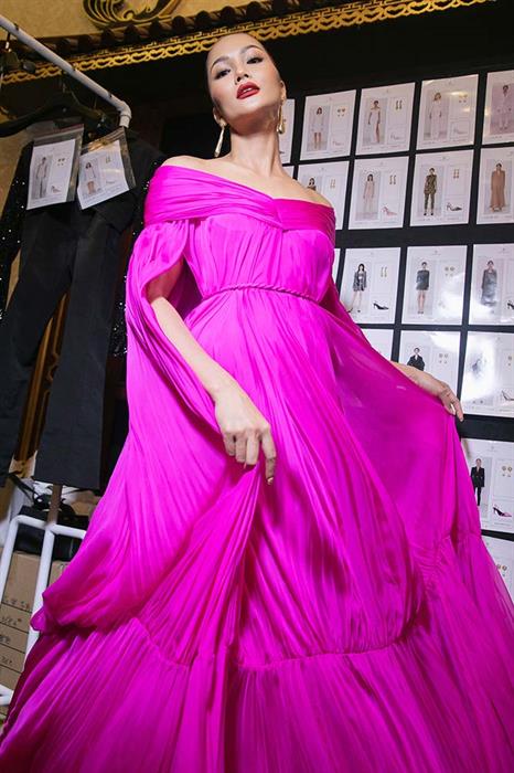 H'hen Niê quyến rũ với thiết kế bồng bềnh của chiếc đầm hồng fuchsia