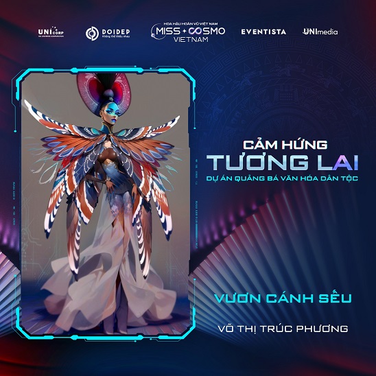 Với chủ đề “CẢM HỨNG TƯƠNG LAI”, các bài dự thi National Costume trong Dự án Quảng bá Văn hóa Dân tộc – Miss Cosmo Vietnam 2023 không bị giới hạn về ý tưởng, kiểu dáng và chất liệu, các thí sinh đã sáng tạo nên những bộ trang phục dân tộc mang đậm màu sắc cá tính và chất riêng nhưng vẫn toát lên rõ nét văn hóa đặc trưng.