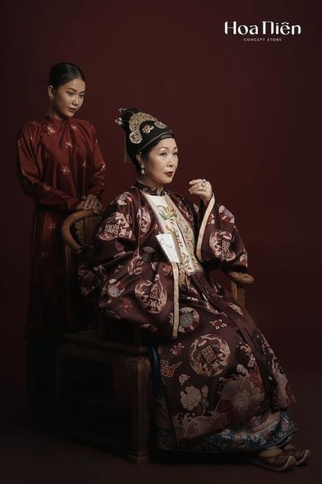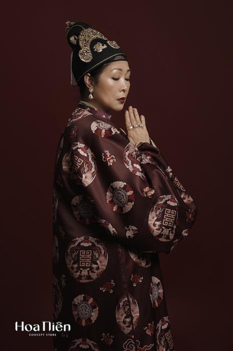 Tintuc - Mới đây, NSND Hồng Vân kết hợp cùng thương hiệu Việt phục Hoa Niên – Năm Tháng Tươi Đẹp đã giới thiệu đến giới chuyên môn và công chúng bộ ảnh phỏng dựng áo Bình Lĩnh của Mệnh phụ triều Nguyễn kết hợp cùng Mão Ngũ phượng