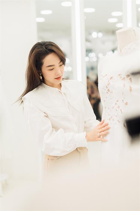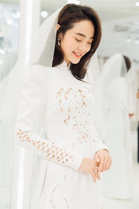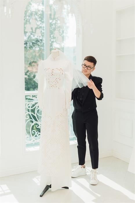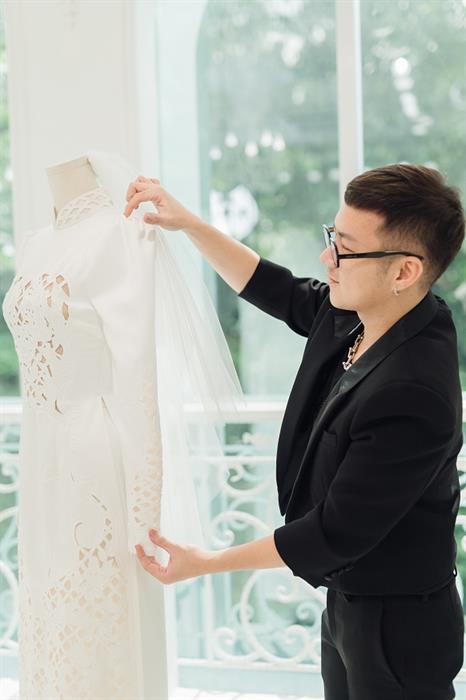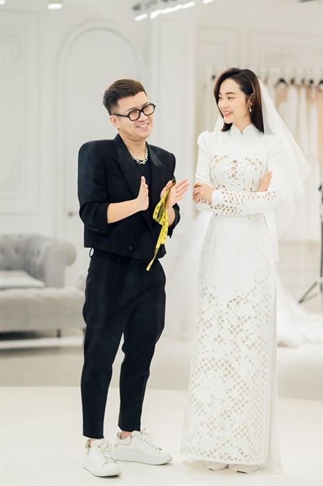Đồng thời, NTK Chung Thanh Phong khẳng định Minh Hằng “yêu ngay từ cái nhìn đầu tiên” bộ áo dài mà anh thiết kế cho cô. Sau khi thử, sao phim “Bẫy ngọt ngào” quyết định ngay và không cần chỉnh sửa bất kỳ chi tiết gì. NTK Chung Thanh Phong nhấn mạnh anh chính là nhà thiết kế đầu tiên tạo nên bộ trang phục cưới đậm dấu ấn nghệ thuật này dành riêng cho Minh Hằng.