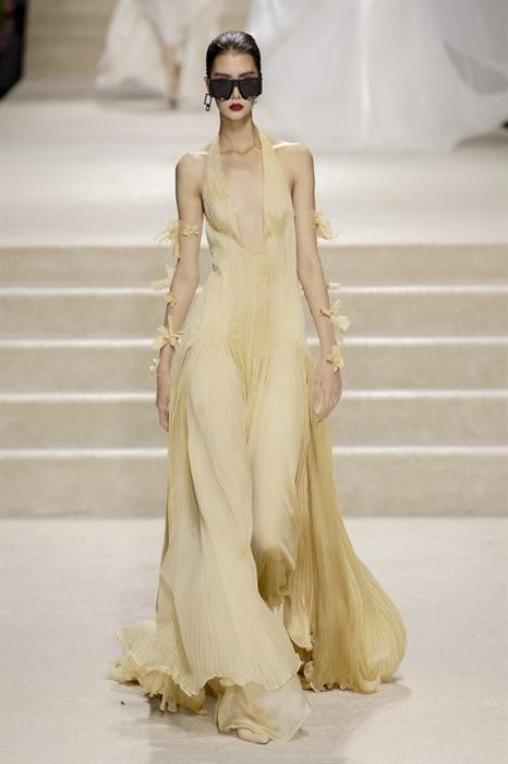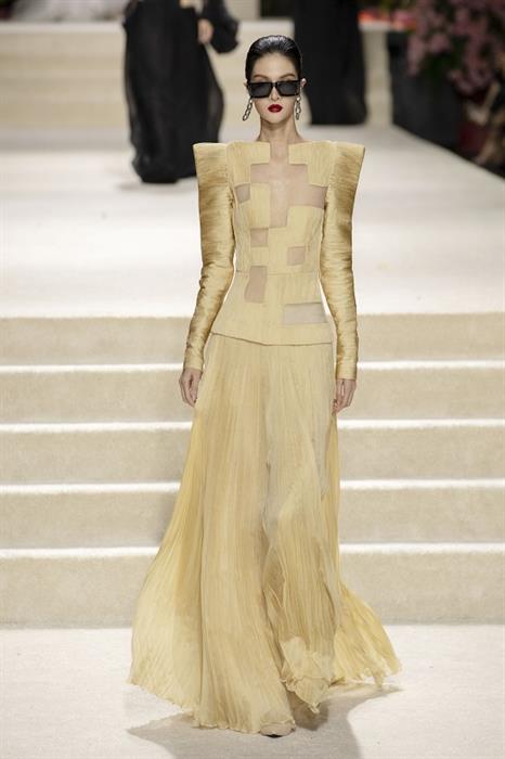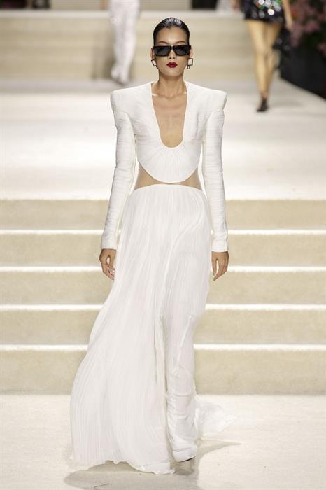 Tại đây, thời trang được giải phóng ra xa khỏi những khuôn mẫu. Vòng eo cạp trễ cùng giày đế thấp, chiếc áo vest ngoại cỡ cùng chiếc mini top thoắt ẩn thoắt hiện cũng được thêm vào BST. Thoạt nhìn, những phom áo cứng cáp với chất liệu dày dặn như đang tích cực lăng xê mốt “sang trọng thầm lặng”. Tuy nhiên, bộ váy áo sequin, kết đá lấp lánh chắc chắn làm hài lòng mùa lễ hội cuối năm.