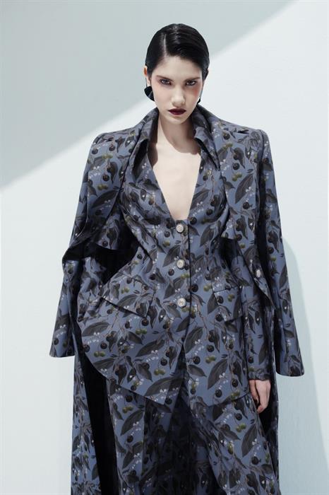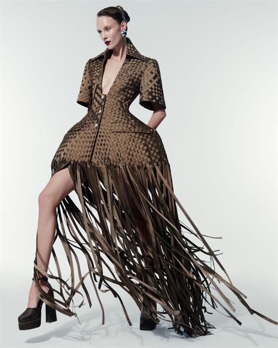 BST Thu Đông 2025 là sự kết hợp của kỹ thuật thủ công tinh xảo. Những dải tua rua uyển chuyển, kỹ thuật chạy dây và đính kết thủ công 3D mang đến vẻ đẹp đương đại xuyên suốt các thiết kế. Hiệu ứng đan nong mốt tôn vinh sự kì công của các nghệ nhân CONG TRI. Đặc biệt, chi tiết trái mặc nưa được đính kết tỉ mỉ tạo nên hiệu ứng 3D nổi bật trên các nền vải Lãnh Mỹ A, nhung, taffeta và vegan leather.
