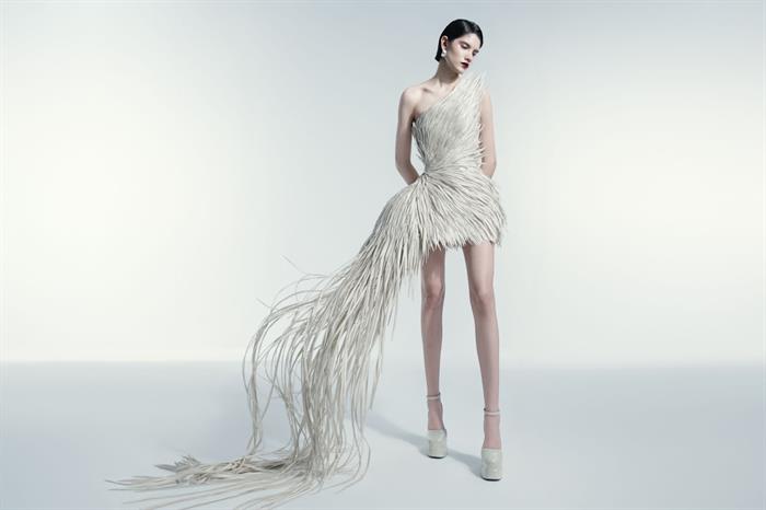Kỹ thuật chạy dây Lãnh Mỹ A được nhà mốt CONG TRI ứng dụng một cách tinh tế, tạo nên cấu trúc độc đáo cho trang phục.